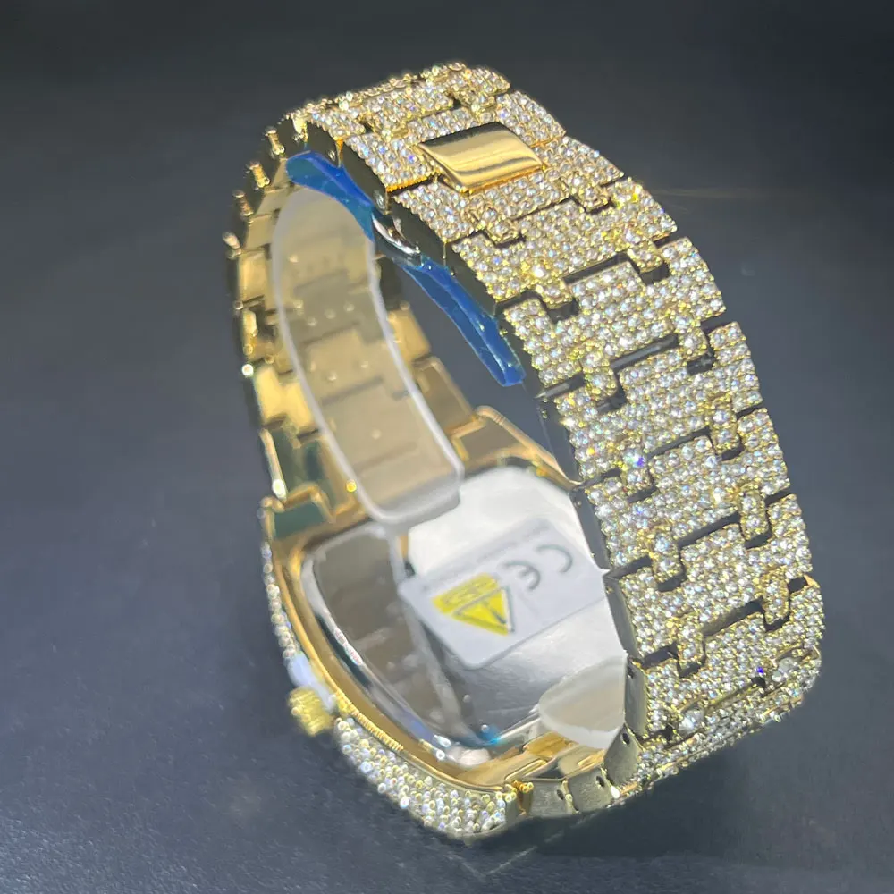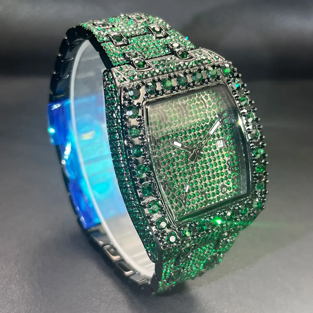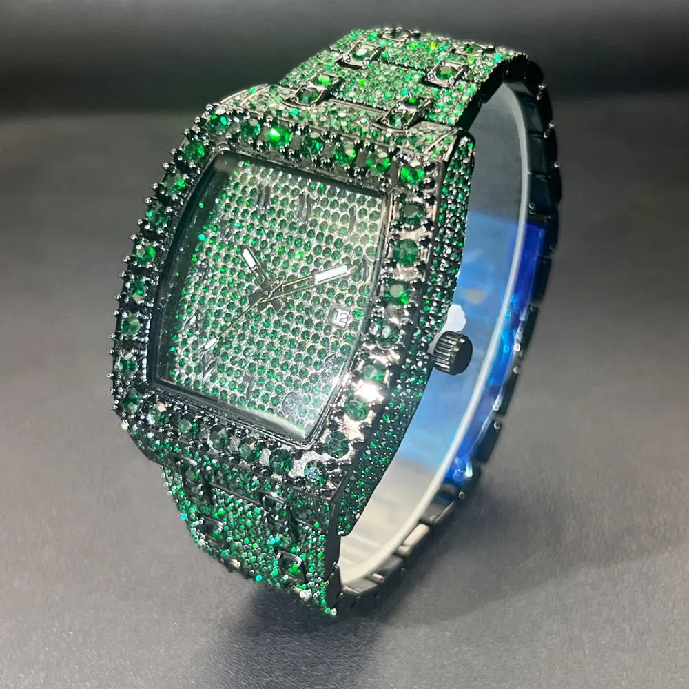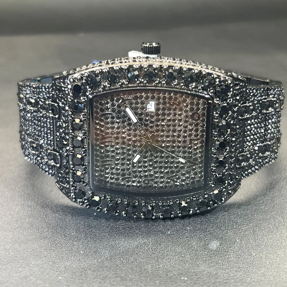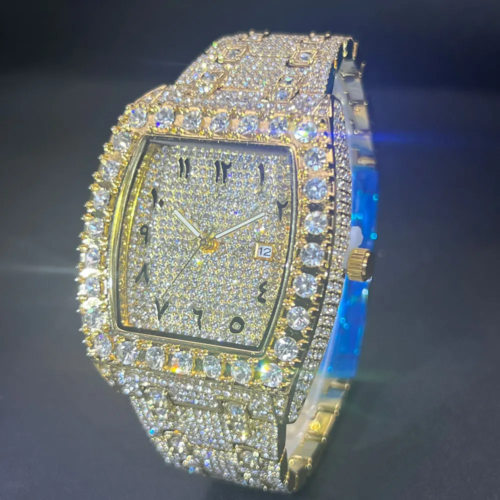 Luxury Iced Out Watch for Mens Brand MISSFOX Hip Hop Square Diamond Quartz Watch Fashion Sports Silicone Strap Tonneau Clock Man