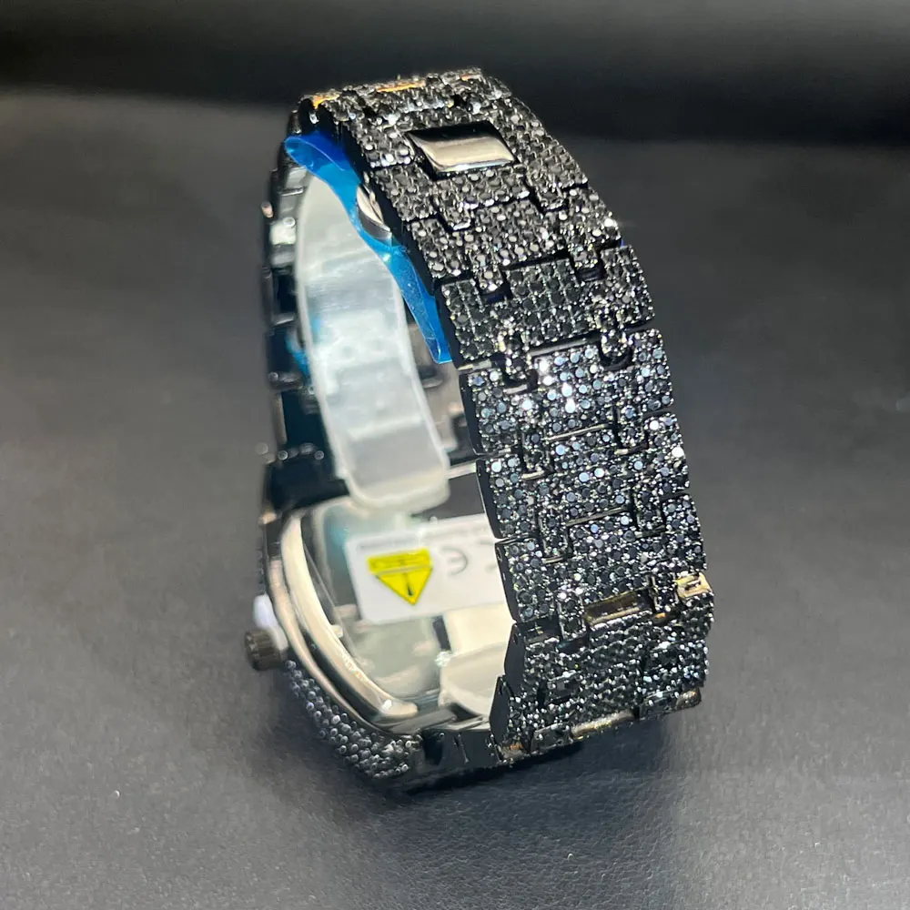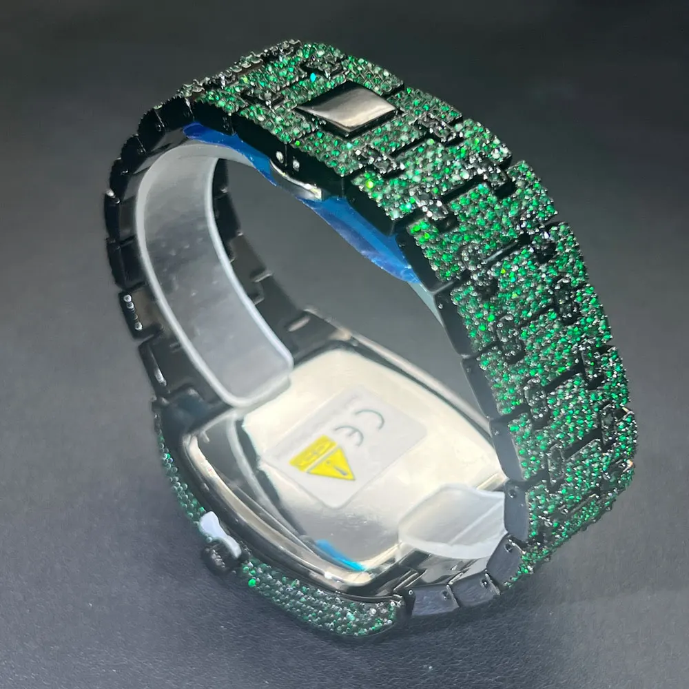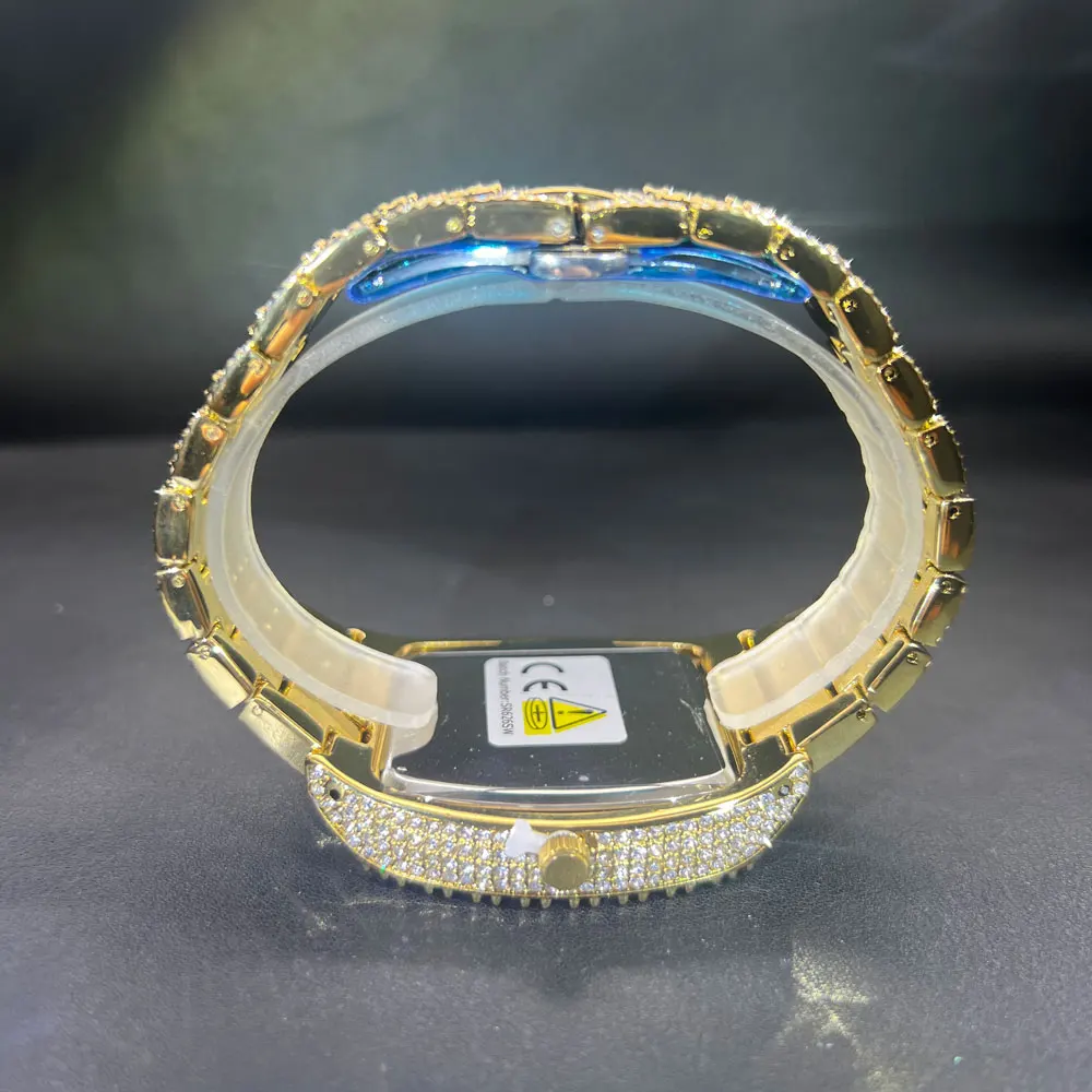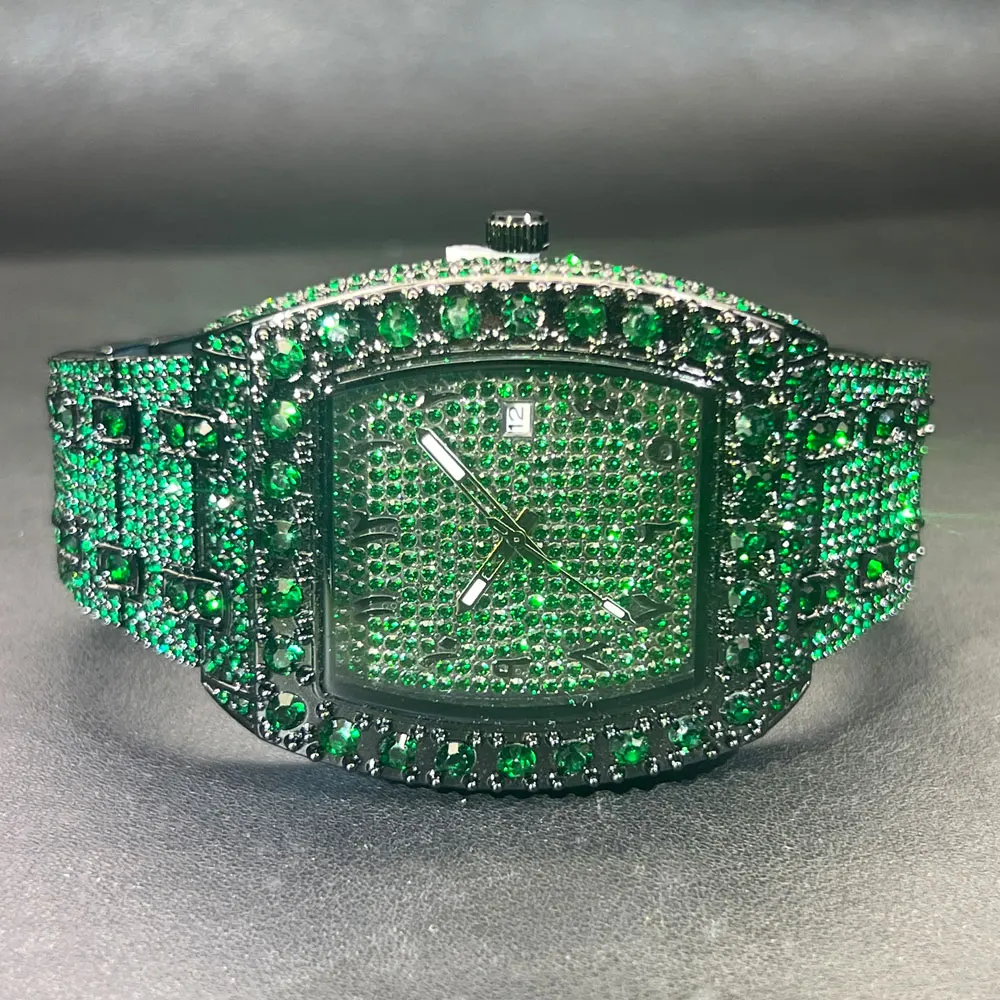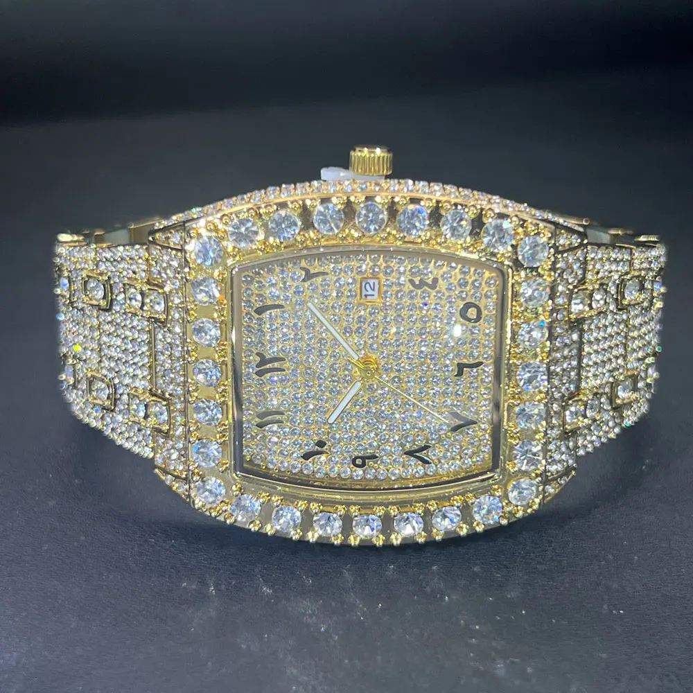 Luxury Iced Out Watch for Mens Brand MISSFOX Hip Hop Square Diamond Quartz Watch Fashion Sports Silicone Strap Tonneau Clock Man