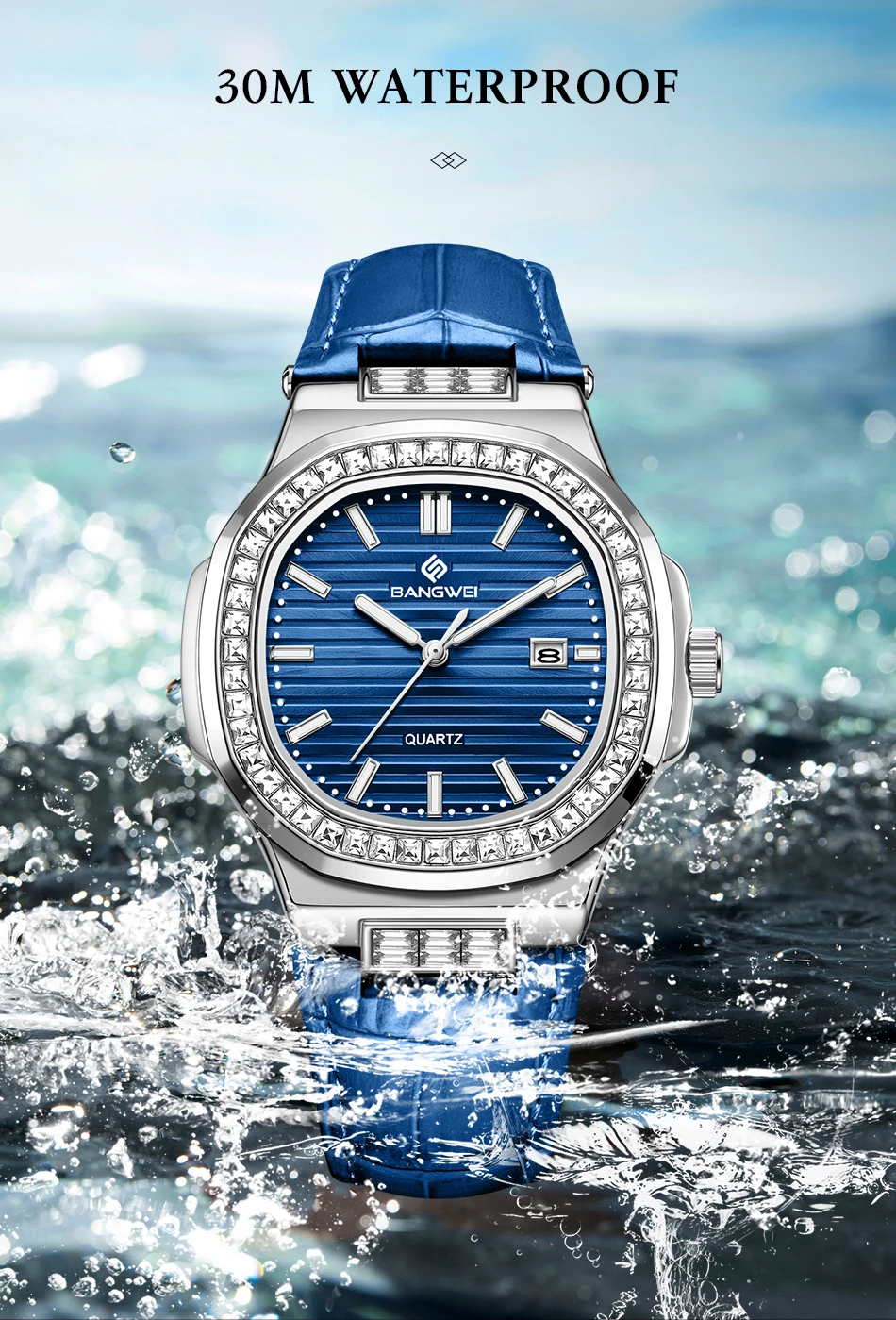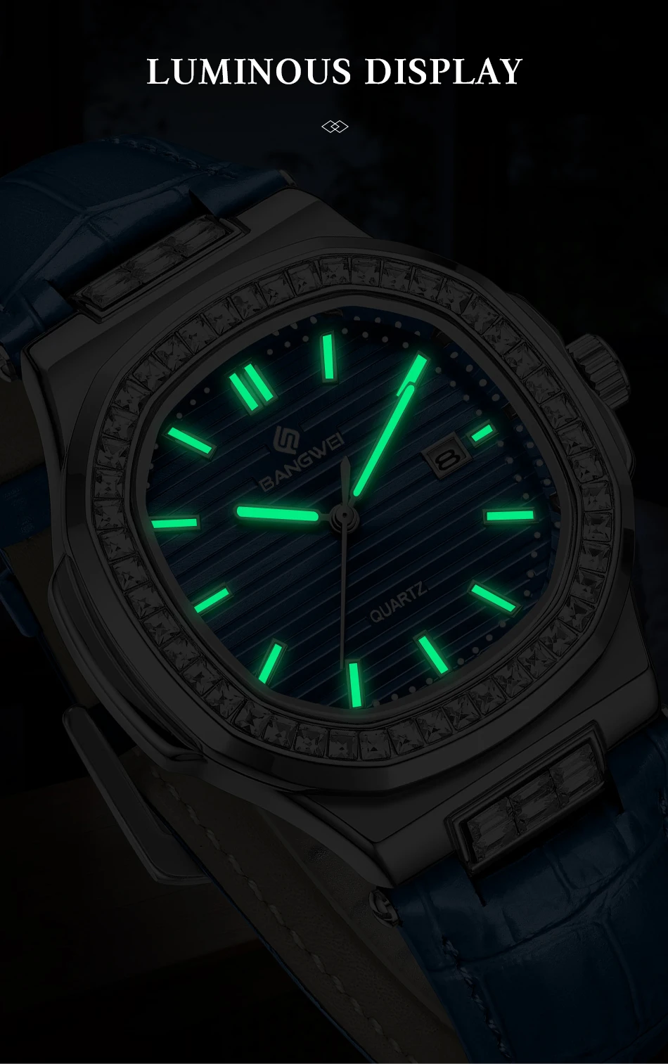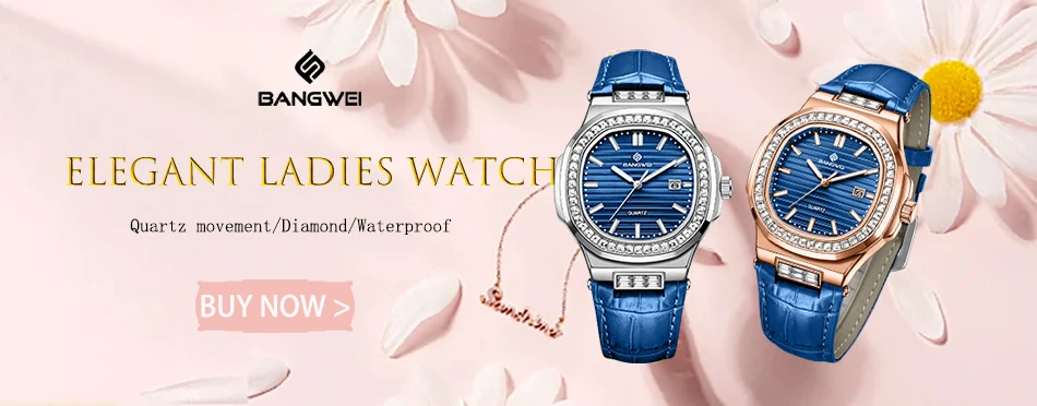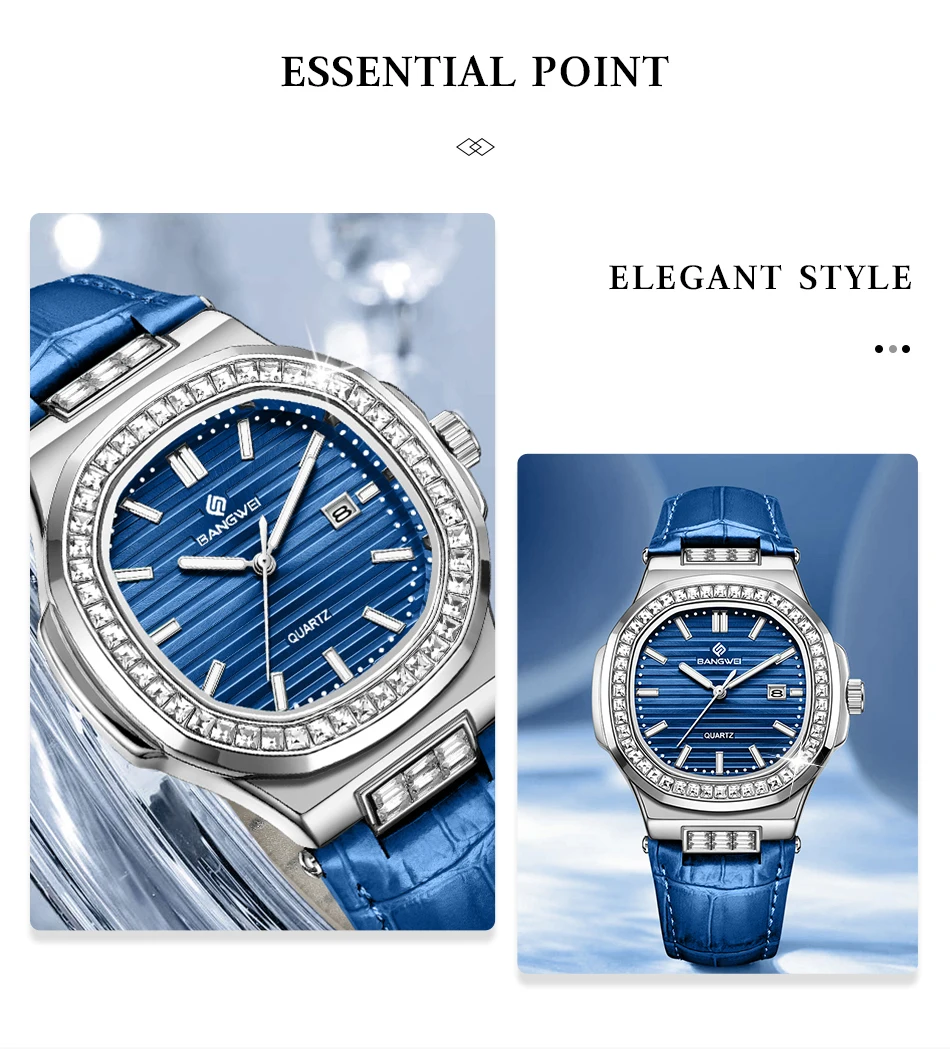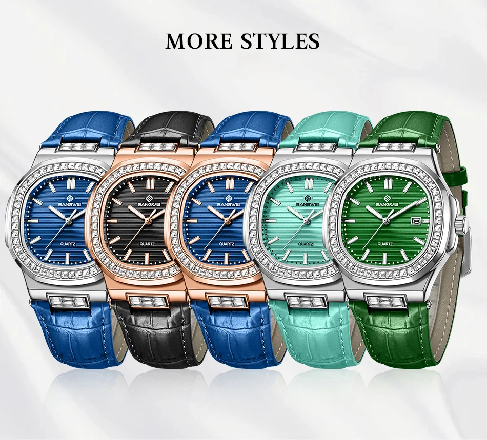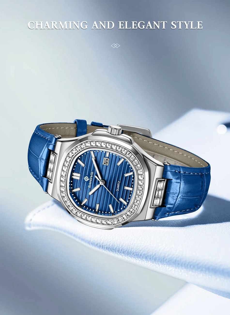 New Fashion BANGWEI Elegant Luxury Quartz Woman Watch Simple Dial Diamond Retro Leather Date Waterproof Luminous Women's Watches