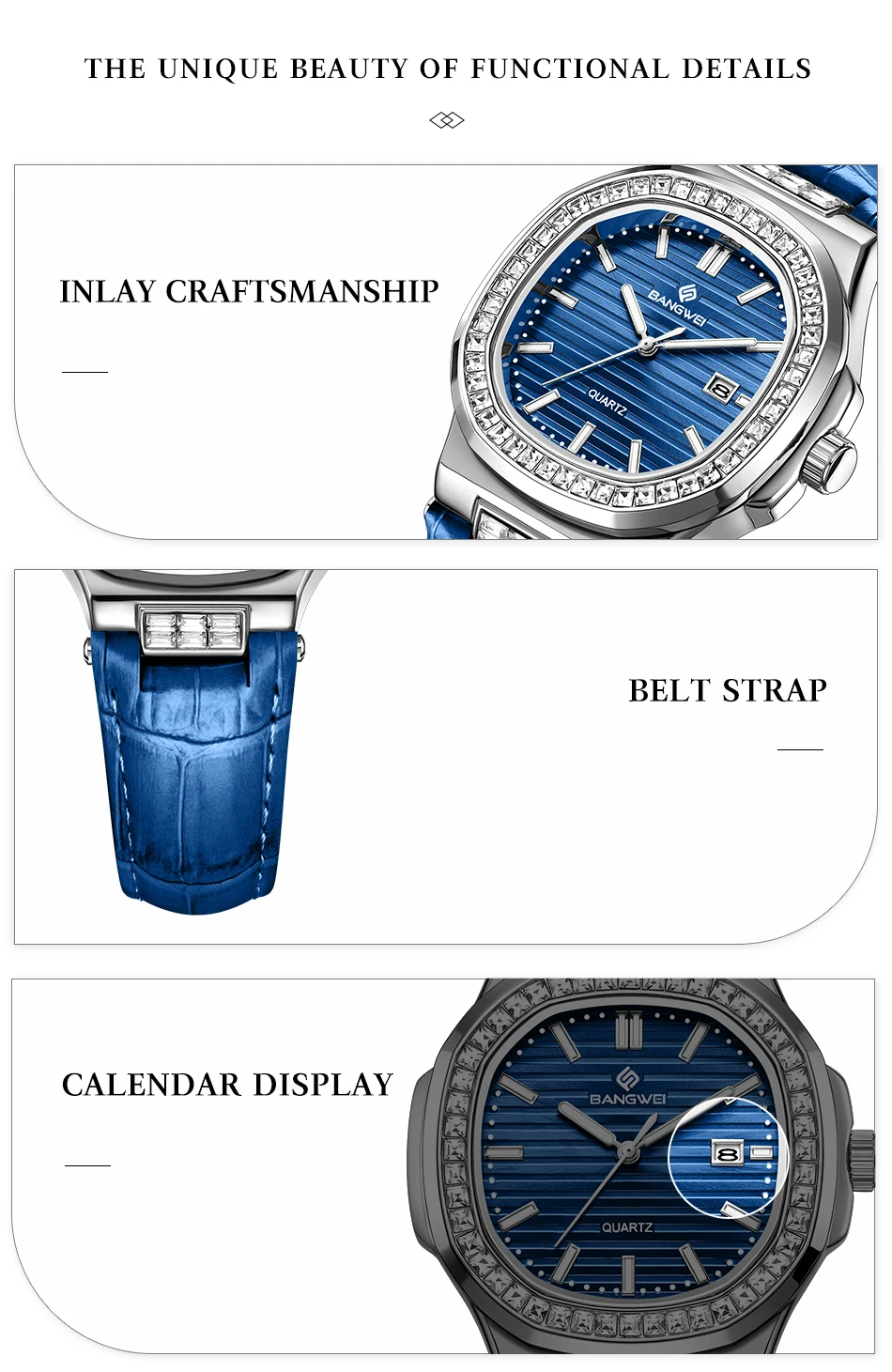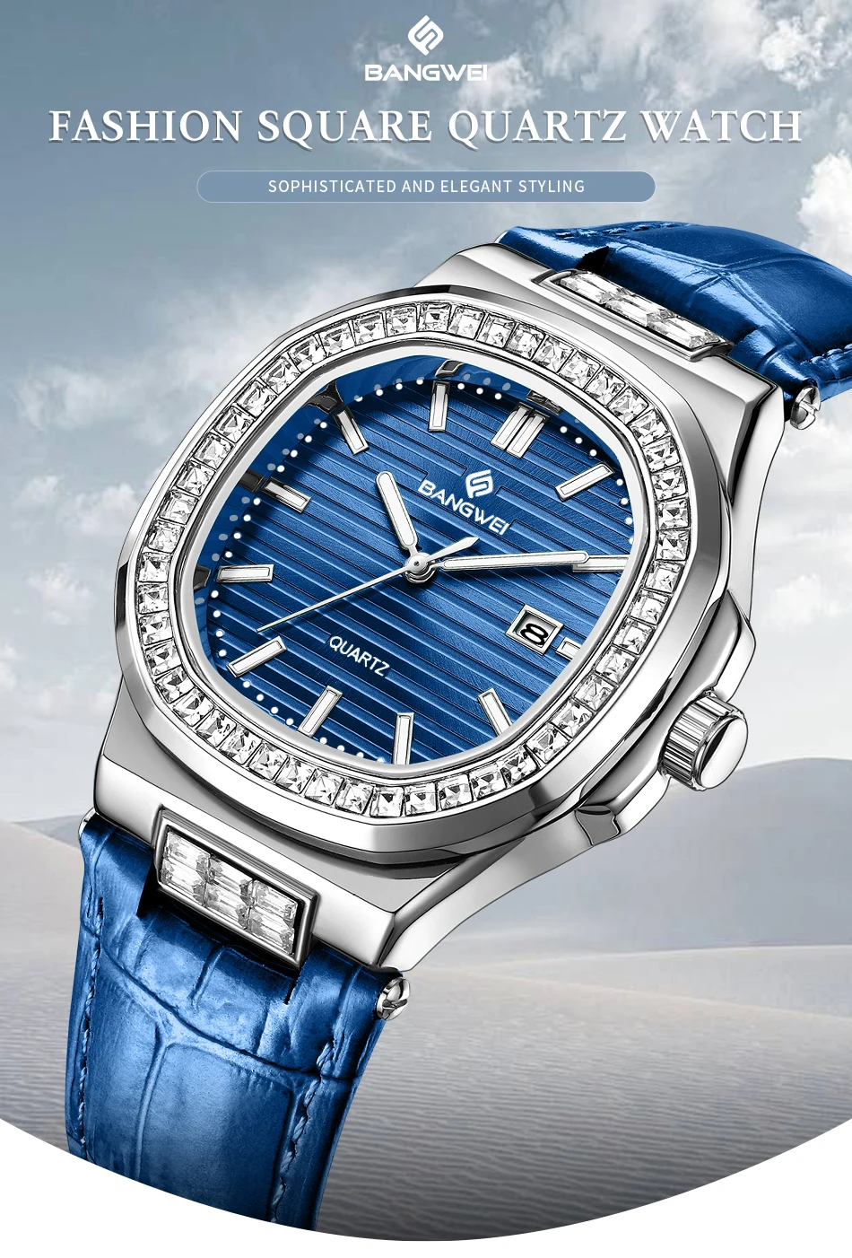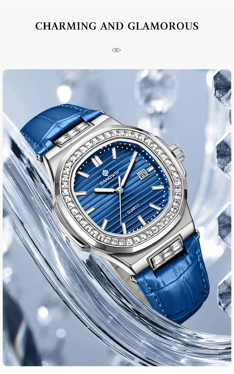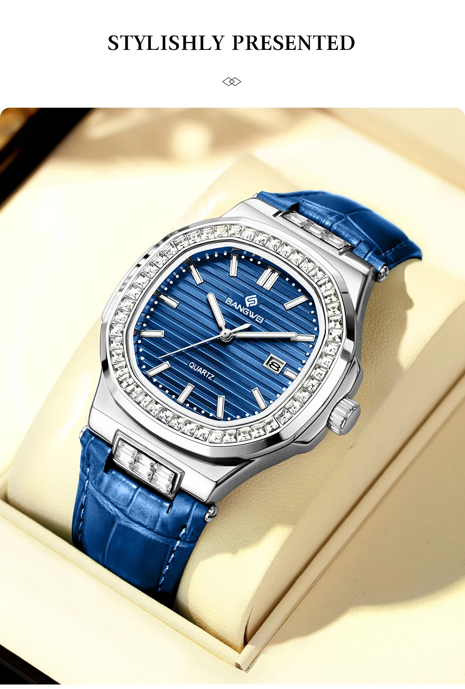 New Fashion BANGWEI Elegant Luxury Quartz Woman Watch Simple Dial Diamond Retro Leather Date Waterproof Luminous Women's Watches