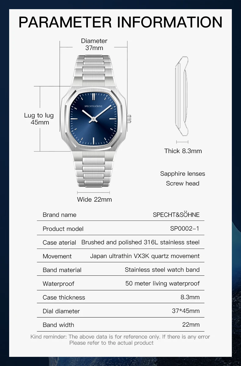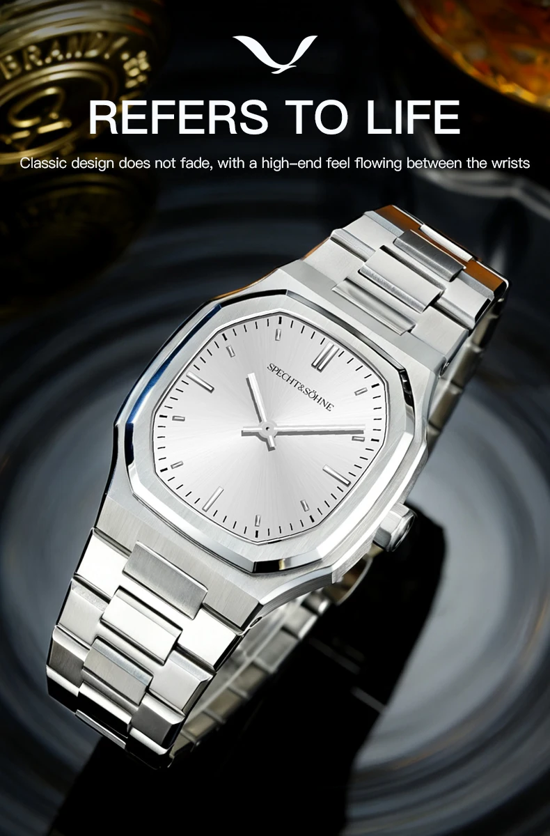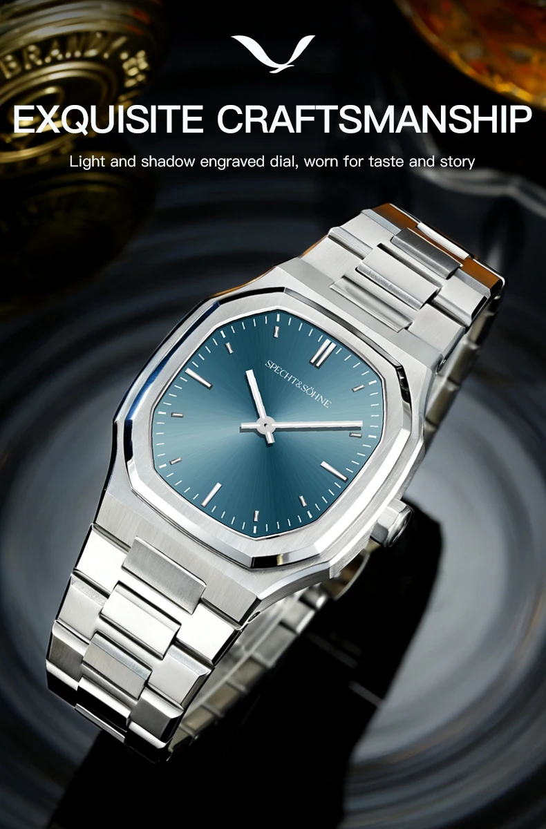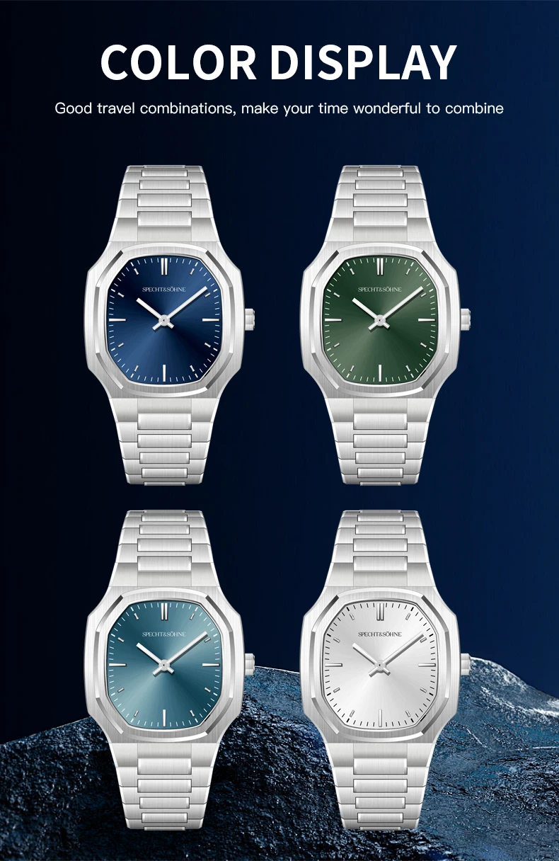 New Luxury 37MM Specht & Söhne Quartz Movt Wristwatch For Men Sapphire Crystal Ultrathin Stainless Steel Watch Relogio Masculino