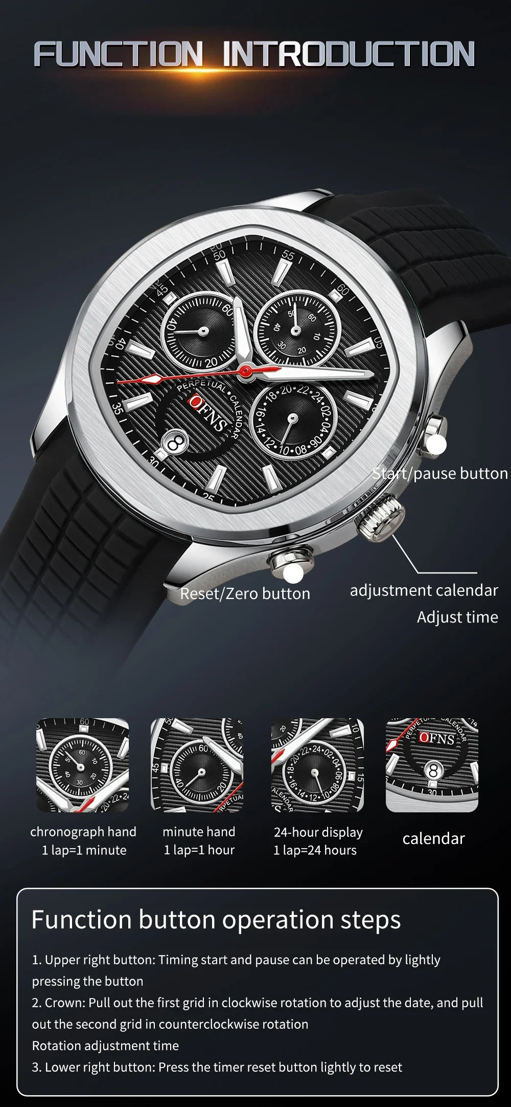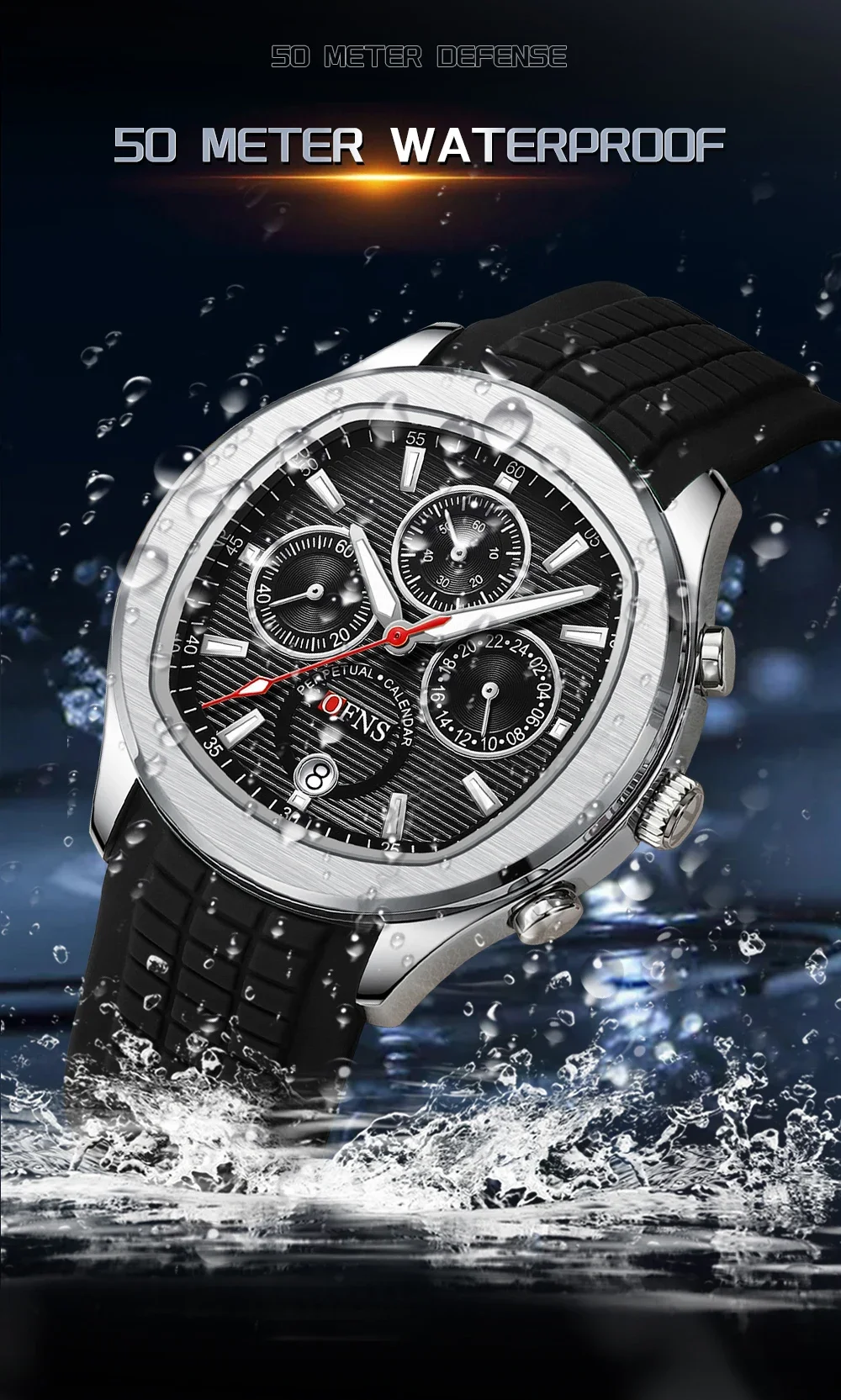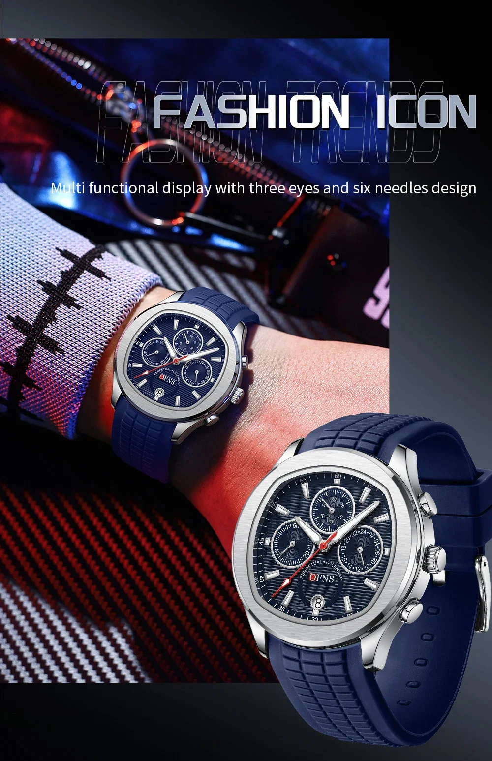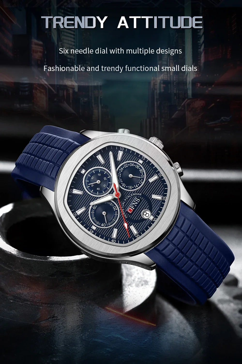 OFNS 8019 Men's Quartz Watch Multi functional Three eye Six pin Waterproof Luminous Calendar Fashion Men's Quartz Watch